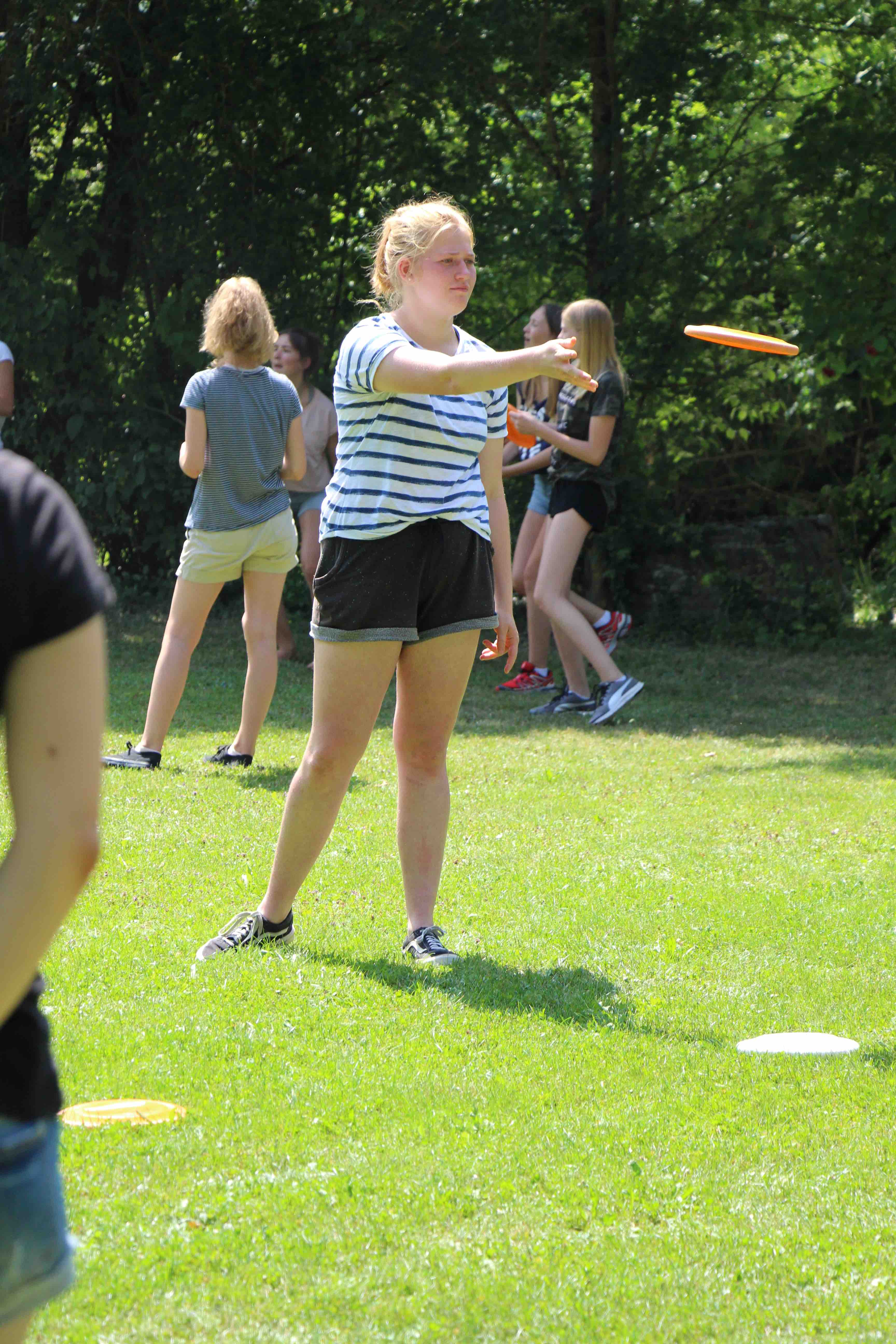 Am Dienstag gab es am Nachmittag einen Workshop mit Christoph Hain im Dog Frisbee und für die Hunde die an dieser Sportart nicht teilnehmen konnten gab es einen Nadac Kurs mit Casi. Mittwochs wurde am Vormittag trainiert und am Nachmittag führte uns Annabelle zur Zementbrücke an die Nagold wo Hund und Mensch ins kühle Nass springen konnten, nach dem Badevergnügen wurde am Lagerfeuer gegrillt bevor es wieder in die Zeltstadt ging. Den Donnerstag verbrachten wir wieder mit Training mit Hinblick auf das bevorstehende Turnier, bevor am Freitag Carmen zum basteln kam, wobei die Jugendlichen ihre Hunde richtig in Szene setzten.